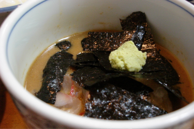 注文すると、あっという間に秘伝?のタレに漬けられた“鯛の刺身”と
