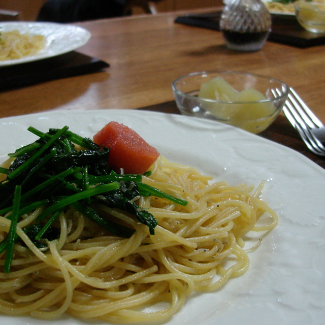 この日の「明太子スパ」は、じゃことほうれん草入りでした。