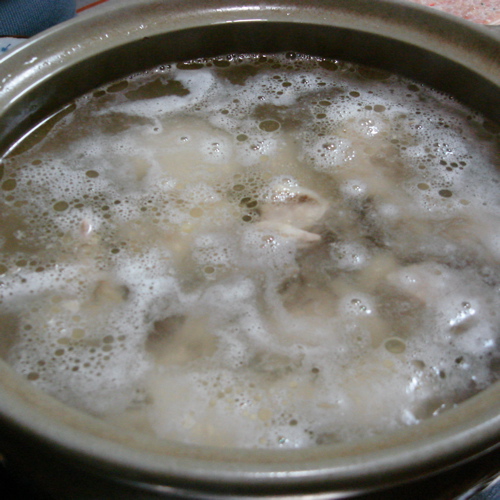 DORI母が叩いてくれた骨付きの鶏肉から美味いスープが出てました。