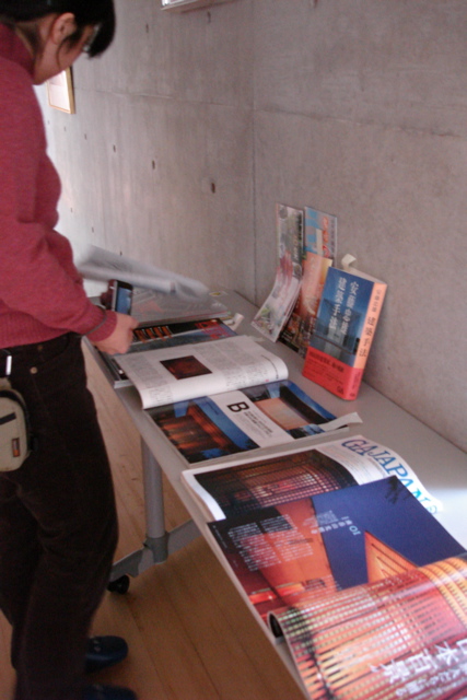 こちらのホールには、このお寺を取り上げた建築雑誌などが置かれてました。