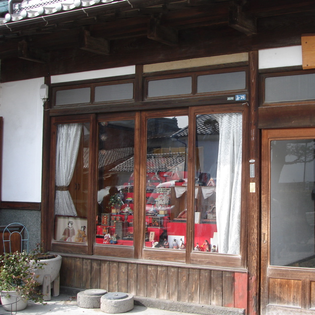 こちらは、隈町の豆腐やさんの店先に飾られていたひな人形です。