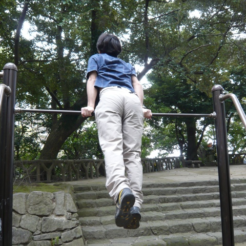 斜めに登るエレベータもあったのですが、少々食べ過ぎたランチを消化するために