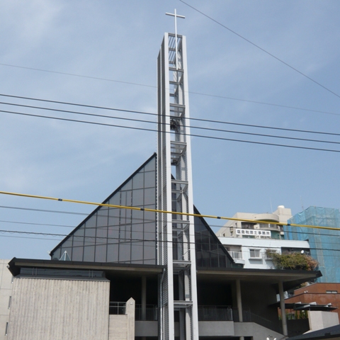 記念館と隣に建つ聖堂は、ガウディを日本に紹介したとして知られる「今井兼次」設計。