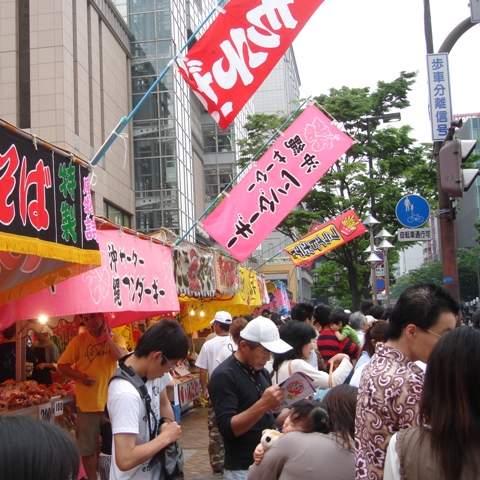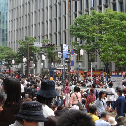 パレードコースのどんたく広場(=明治通り)沿いは人垣で前が見えない状態 (><)
