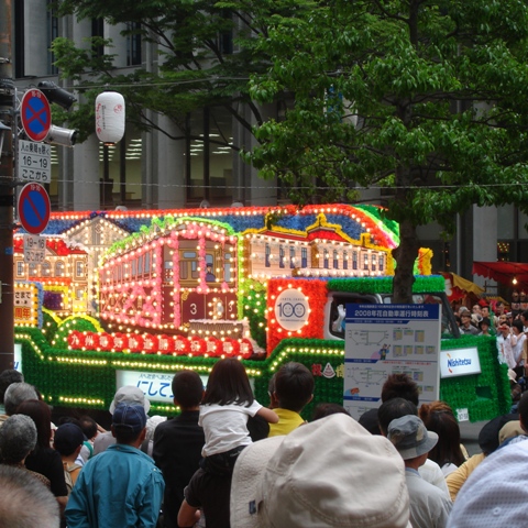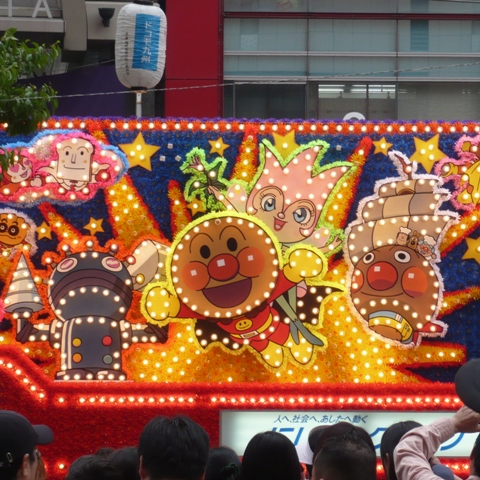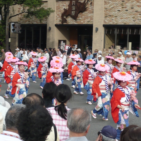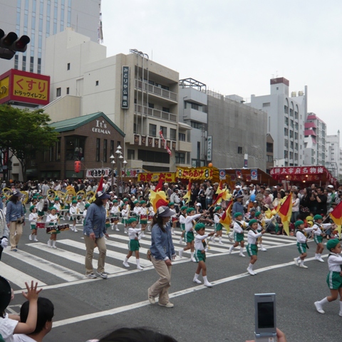 そんなどんたく広場を「花自動車」に続いて、次々とマーチングバンドやバトントワラーや