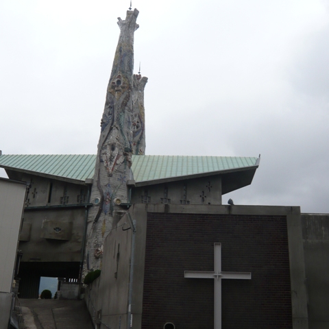 記念館と隣に建つ聖堂は、ガウディを日本に紹介したとして知られる「今井兼次」設計。