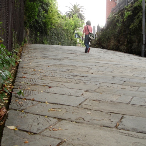 斜めに登るエレベータもあったのですが、少々食べ過ぎたランチを消化するために