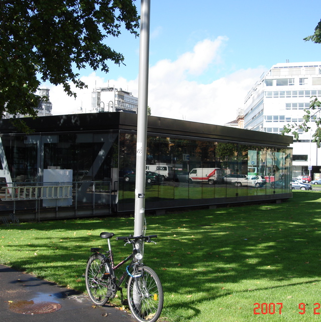 壁面がミラー調になっているのは、歴史建造物(周辺の建物)を、