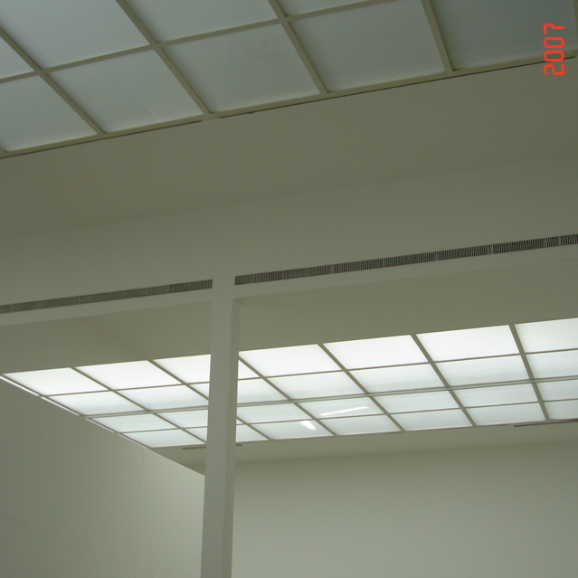 内部は、トップライトから落ちてくる光を受ける光天井が空間を照らし出しています。