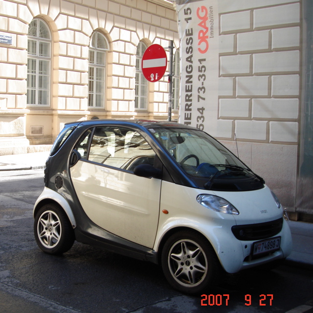 そういえば、ヨーロッパではスマートをやたらと見かけました。(右写真の車)